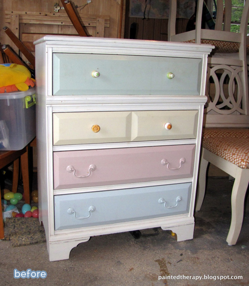 This before dresser was sporting a thick layer of bright blue paint that took all of the attention away from its shape and character. “Excuse me!” I bet it would say, “Don’t you know I’m a regal chest of drawers? Put me on display, where I belong, not stuffed away in a little boy’s closet!”