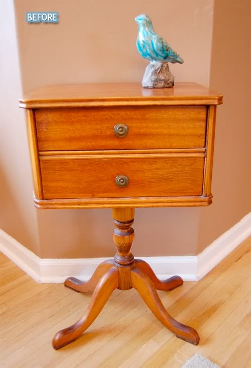 And the last table was rescued by Kendra at My Insanity. I’m loving the two toned look. I don’t know how she managed to get that nasty broke-down wood to look so good, but dang, it looks good!