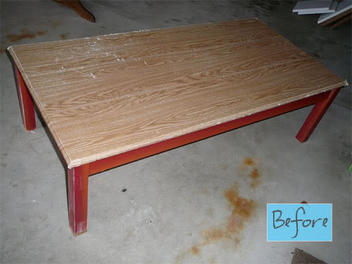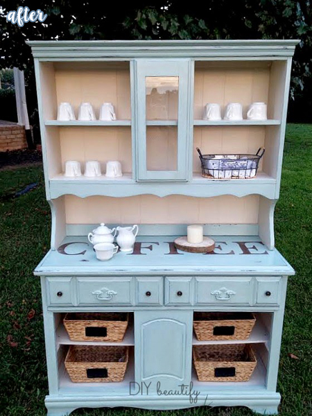 Here’s some more yummy goodness coming from Jen at A Thousand Words. A totally mismatched mess of a country-fied desk and junky chair come together in perfect chippy harmony with a little paint and distressing and a dark stain on the top.