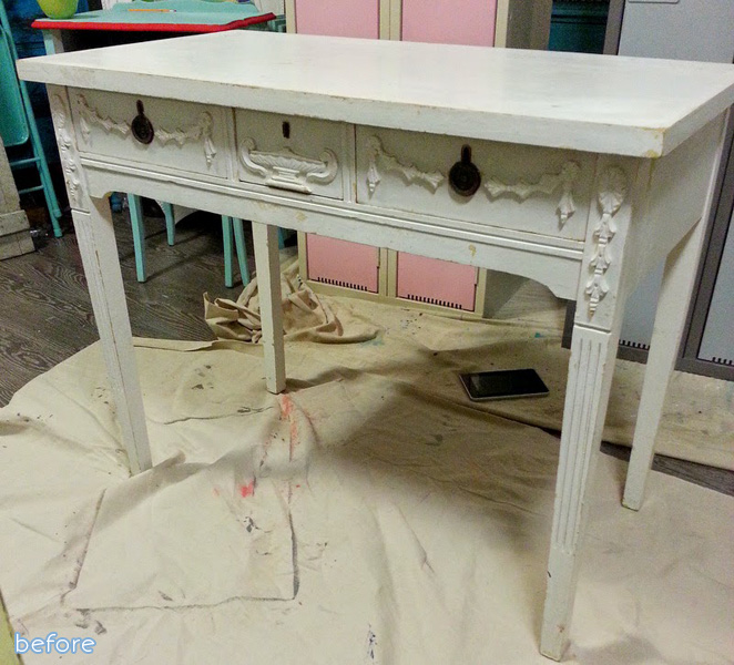 She says, “I was overly optimistic about this piece. It is ginormous!! I did not realize all the work it would take to remove all eight doors, 20 hinges, 14 knobs, not to mention all the taping it took for covering the glass before spraying.”