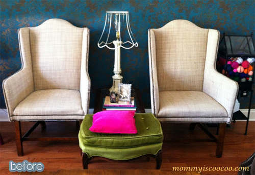 Better After reader Alexa bought these chairs from a neighbor, ($100 for 4! Bargain!) and luckily saw some potential there. Armed with some white paint and Trina Turk for Schumacher’s orange zebra print fabric, she turned them into something positively enviable. Great job Alexa!