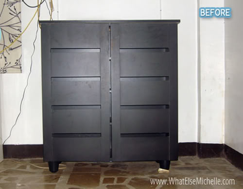 Jen of Sanctuary Arts at Home was tired of her blah hutch, so she set out to give it a distressed cream paint job. But, after painting the black base coat, she loved how it looked and stopped there. I love how sleek this looks with the doors removed, and how it still has a bit of the country charm from before, only with more sophistication. Thanks Jen! See more HERE.
