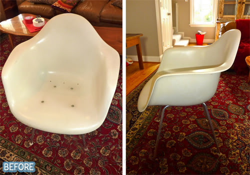 After convincing her mother that one cannot contract swine flu from a sofa, (But can one? Who knows?) she helped her recover it with some $6 per yard fabric. Final product: a gorgeous new sofa for less than $100, AND no swine flu. Win-win! See more on her blog HERE.