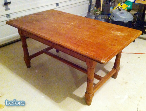 This before table was not just lacking in the style department — it had never even met the style department. Annie fixed it up with a leafy paint job that took its cue from the detail on the original knob. See more on her blog Living with Annie.