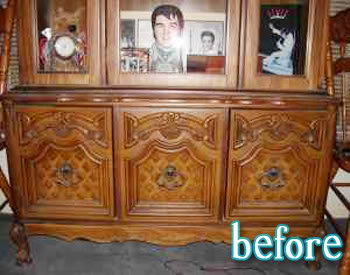 First up, this dramatic redo from Raquel. Her blog is called The Glamorous Life, so she fixed her hutch up with a red worthy of the red carpet.