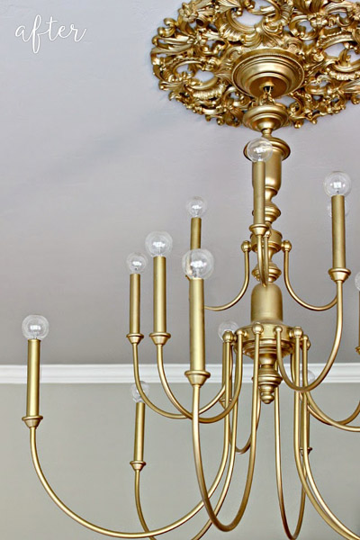 I just love a chandelier redo. Even when they are brassier than Britney’s weave and covered in dust, they still can’t help but be fabulous. An ugly chandelier is like the nerdy girl in the movies; you know she’s a total babe underneath her glasses.
