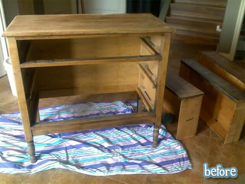 This here used to be a plain jane side table, but Kammy from Kammy’s Korner spiffed it up with some spidery spookiness. Scary! Check back in later today for more Halloween horrors!