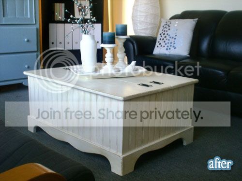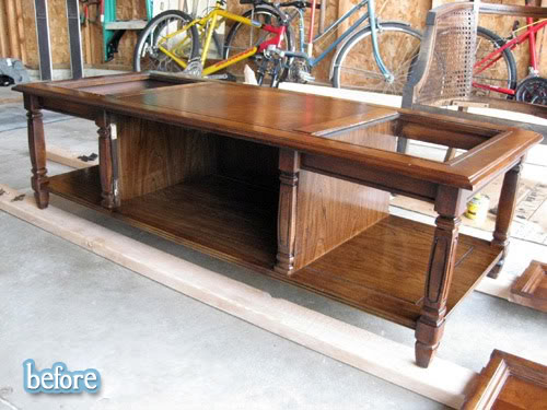 Shannon’s old coffee table was a little bit country … actually it was 100% country. Not even a smidge of rock n’ roll. The heart cut-out seals the deal. I am literally hearing banjos in my head just looking at it. But behold the transformative power of beadboard and paint! It looks like it just square-danced out of the past and onto the pages of a magazine.