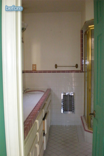 Especially when compared to that before, boy howdy. Now that the country heart wallpaper has square-danced off into the sunset, you can appreciate the fact that the blechy countertop was not blechy at all, it just needed to coordinate better with the vanity.