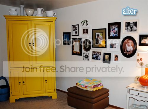 However, what I got on here to say is…I had to laugh at the last ones “before” picture. As she clearly was mid paint and went “Oh CRAP I forgot to take a before picture.” So, we got to look at primer. Oh well. IF you love yellow that much then it looks great. I can’t make yellow work for me in my house.