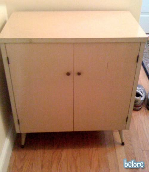 Approximately 100 years ago, or actually 1 year ago, which is like 100 years in blogging years, I featured Jaimelyn’s table, seen here. Back then she took it from plain and strange (still not sure what that mystery patch in the corner is all about. Did they run out of stain? Or started sanding but gave up very early in?) to black and white. Well, it’s black and white again, but better than ever! What could be better, you ask? Well, hold your horses, I’m about to tell you. Stripes! Big, fat and chunky. That’s how I likes ’em.