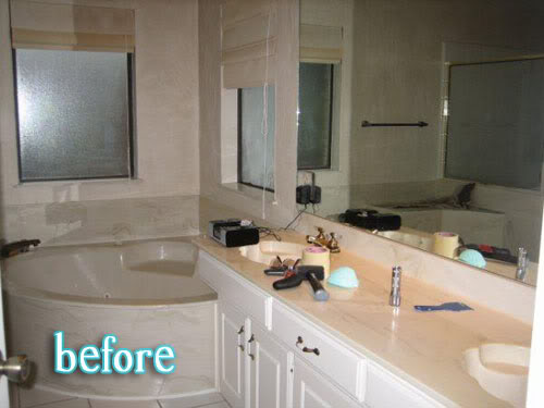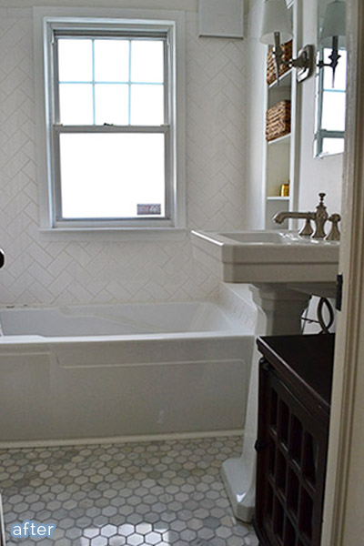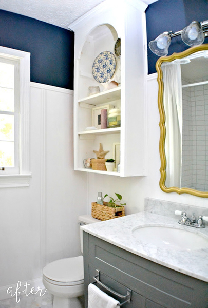 It’s been awhile since I posted any bathroom a makeovers, so here are four, count’em FOUR, just for you! But that’s not all. Not only are these four bathroom makeovers all fantastic and whatnots, they are all done by the same person! Wonder Andrea! Not her name, but should be. (Ok, ok, so some contractors were involved too).