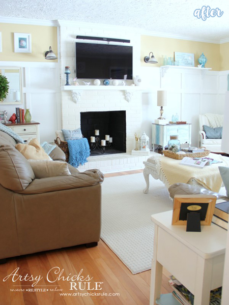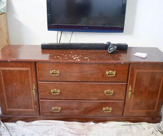 Anyways, Katy isn’t one to think inside the box, as evidenced by her pallet wall, and also the buffet she later redid to go under the TV. Fish?! I would have never conceived such a thing!
