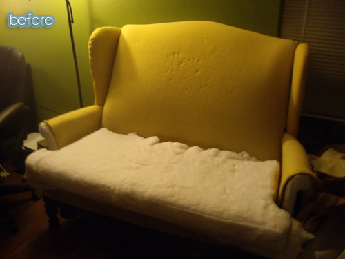 Angie’s little footstool totally takes me back. I’m pretty sure my grandma had this same one in yellow many years ago, but I don’t recall the handy drawer. Because what makes more sense than a drawer in a … footstool? It was also functional, but a bit of an eyesore, nothing that a little webbing, ticking and dropcloth couldn’t fix! A year ago, I couldn’t have told you what any of those things were. See it on her blog The Country Chic Cottage.