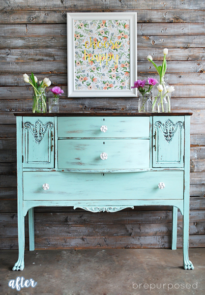 Better After reader Chelsey thinks both! This $40 find was headed for her dining room, so she was inspired to incorporate some foodie fun in the makeover. Look ever so closely, do you see it? Genius! Thanks for sharing Chelsey!