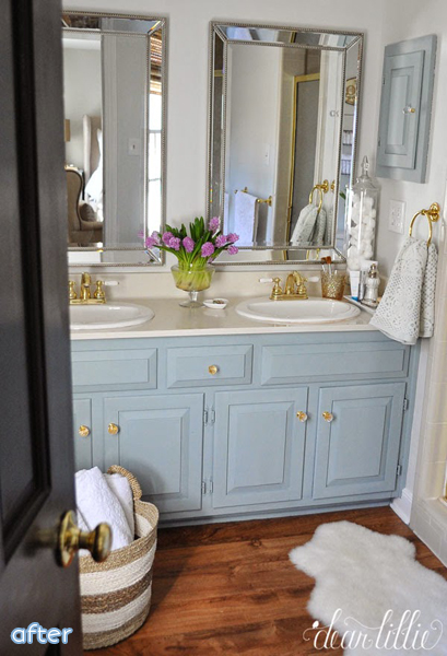 That’s the best I could do. You try it, it’s not easy. But oh, let your eyes feast on the after. Even the soap dispenser is cute. I don’t have to put on my trying-to-be-nice face for this one at all. Love everything about it. See it on Tenille’s blog HERE.