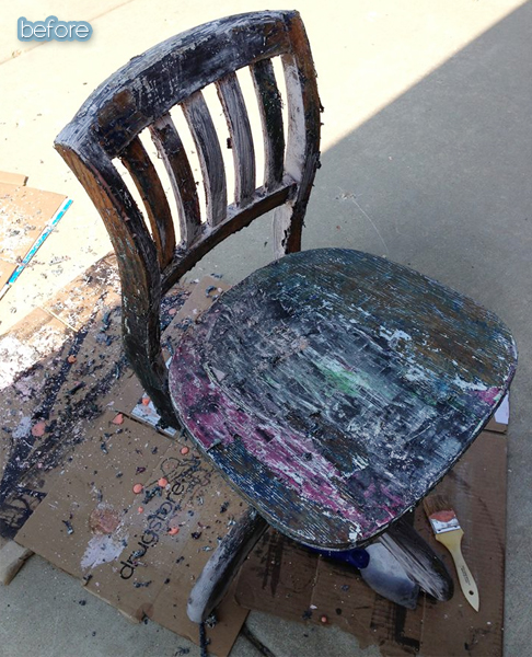 It’s only fitting that a harp-backed chair should have a musically-themed makeover, yes? Jessy from Where the Wild Things Grow thought so, so she paid $3 for this chair, added a clef note and now this chair really sings! Ok, that was corny, I’m tired today. This chair was an extra special find for Jessy, who used to be an Alpha Chi Omega, and one of their symbols is a lyre! I was never in a sorority, if I had a symbol that represented my college years, it would probably be a pizza box.