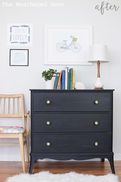 I wouldn’t feel too bad the original chest: The chest had water damage on the front and the top, its top layer of paper was bubbling and peeling off.. You can sort of tell in the front on the before picture :)…