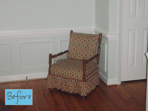 September 28, 2011 at 4:44 PMThat sure made a difference in the appearance of that chair! Love her fabric choice… and the cat is cute too!