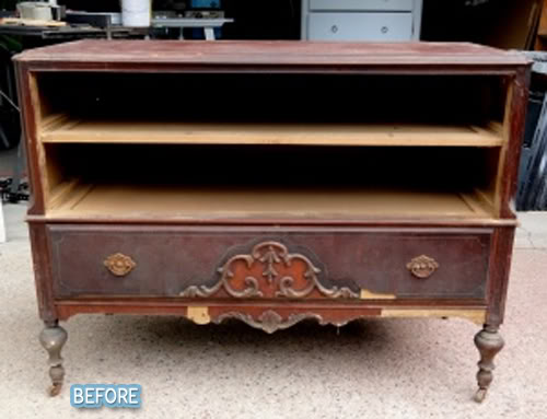 Erin had it professionally reupholstered, but saved serious cash by finding that fabric for $3 per yard. It looks fantastic! The great lines of this piece really stand out now. Oh animal print, never go away! See more on Erin’s blog We A.R.E. Randall’s.