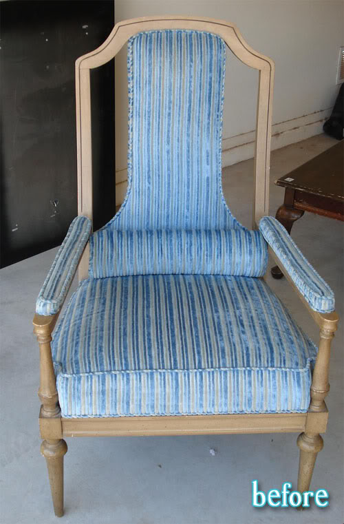 It was in sorry shape, but Kata fixed the frame, added extra padding, and did it up in style with bold red stripes. I wonder why it only has one arm? Must be an ultra-cool Euro thing.