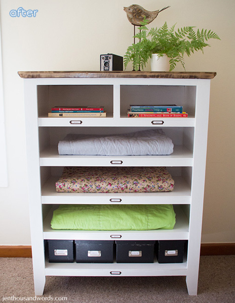 If I asked you to describe the process Kristy went through to take this dresser from beat-up to beautiful, you would say something like “Oh, looks like she repainted it, added some new hardware and an applique, and somehow muscled a giant slab of custom-cut marble on top.” To which I would say, “Ha ha, WRONGY CAT!” (‘wrongy cat’ is an actual term my kids use to tell each other how wrong they are about something, anything. I think it evolved from the term ‘scaredy cat.’ It is quite the derogatory insult here in the Allen household.)