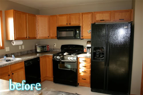 And are you one of the many non-American’s who often emails me wondering why Americans like our white kitchens so much? I don’t have an answer for you. But I do have this black kitchen makeover from Rebekah at DeBlog as a sort of peace treaty truce thing. I think because there were SO MANY fake, shiny, tacky wood cabinets used in American homes built over the last decade or so that we’ve finally decided to just give our eyeballs a rest and paint those suckers. Just my theory. What say you?