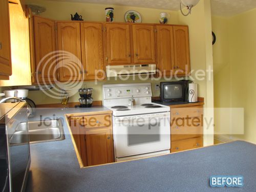 March 2, 2012 at 3:49 PMHi, I’m the one who redid this kitchen. Thanks for the lovely comments. I don’t have a blog but I could email you some pics if you leave me an email at sabien@rogers.com. I’m also on facebook and have an album of my projects there. There are so many great photos from different angles that can’t be shown here due to space. The counter top was an ugly blue laminate and wood trim, and it cost me $250 to redo. It’s been almost a year and it’s as shiny today as the day I did it. It will scratch fairly easily but it’s as smooth as glass and I’ve put 2 tempured glass cutting boards in two areas to cut on and place things on, so most of the time items aren’t on the actual counter. I have 2 teens who respect that rule and it preserves