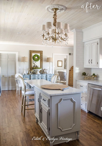 WOWZERS! Is that what you just said to yourself? Because that’s what I said to myself when I saw Ashley’s kitchen makeover. Look how cramped and cave-like it used to be! Well, you can’t. Because there is a huge wall in the way. But not anymore! She was aiming for a open and airy streamlined look. Mission accomplished, I’d say.