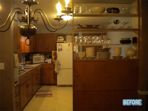 August 8, 2012 at 1:02 PMI like the lighting, the letters and the stools. It looks like a fun kitchen. I do question about getting rid of all the upper cabinets because I’m wondering where they store everything. The lazy side of me is thinking how I’d have to dust those all those shelves.