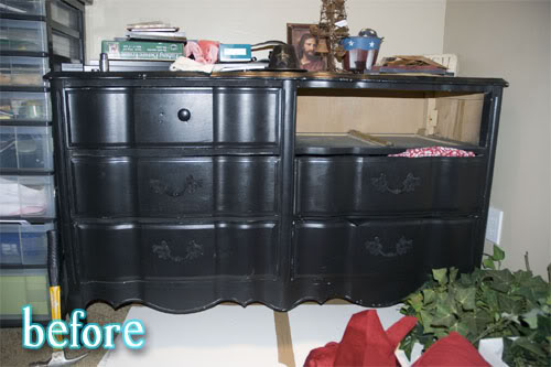 This one requires even more imagination. Brie at Darling Doodles had a big, empty entryway and was determined to do something about it. She liked a certain entryway bench she saw in a magazine, but for $299, she knew she could do better. She ended up saving $279 and Frankensteined one herself with plywood and some old tables parts that were headed to the dump! I think it looks sturdy and sharp and even better than the $299 version.