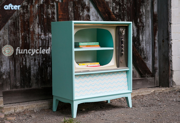 First Kirsten added a little stenciled whimsy to this two-color desk of damagedness at Made For A King.
