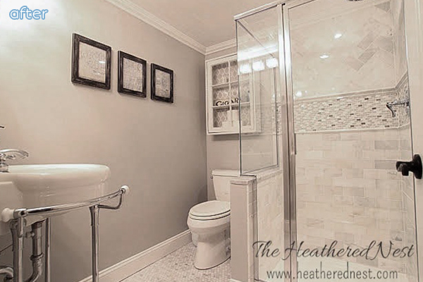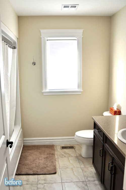 So, may I present to you Phase 1 of Lura’s bathroom makeover. Phase 2 will involve new tile and de-brassing the fixtures, but I actually don’t even mind them next to the bronze and blue accents she’s added to the room. Do you agree, or is that the fever talking? See more on her blog Domesticability.