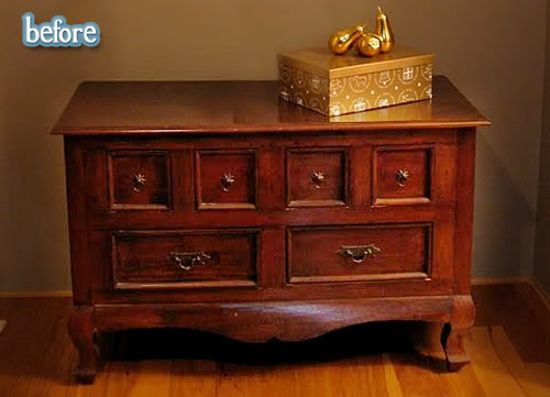 Even today’s dresser makeovers have traveled farther and wider than I have recently. This dresser from Deb has been down the Platte River a few times, and now bears a stamp to prove it. Check out the whole story on Deb’s blog Lake Girl Paints.