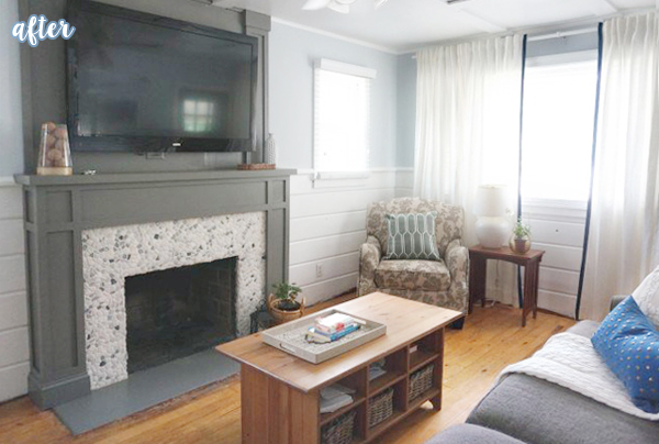 You know what this room needed?  A fireplace.  Wouldn’t a fireplace look great on that big blank wall — hold up.  There WAS a fireplace in there. It was just completely camouflaged by being the exact same shade of beige sadness as the rest of the room.
