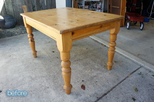 Shannon loved this dresser she found at an auction, but not so much the ‘banana pudding’ color scheme. So she gave it a coat of white primer, and got no further than that for nearly a year. But by then, the white had grown on her. So she finally finished it off with a glossy top-coat and a dipped look by painting the bottom in gold, and I’d say it was definitely worth the wait. See it on her blog Burlap and Lace.