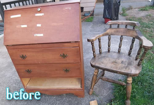 And can you believe Better After reader Giedre found this chair on the curb? Ok, in the before state maybe. It it wasn’t in terrible condition, but that fabric was what I would call ‘Grody Granny.’ So she ripped off the dust ruffle and reupholstered the whole thing in denim. I just love how it turned out! And if you have the urge to try it yourself, Giedre says it was surprisingly easy. You just need patience. And a LOT of pants. So many that you might get desperate and rip them off of innocent denim-wearing bystanders. You should probably put up a warning sign or something.