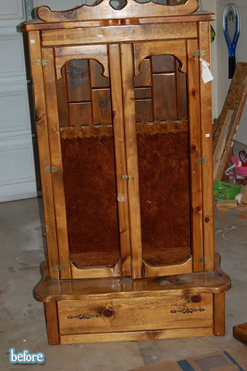 And while you’re at the thrift store, don’t be so quick to pass up something like this tulip-infested milk jug. Simply look past the speckled paint job and the dead-eyed stare of the cow in her wallpapered pasture and appreciate its curvy shape instead. It makes a fantastic vase! From the gals at Shabby Gals.