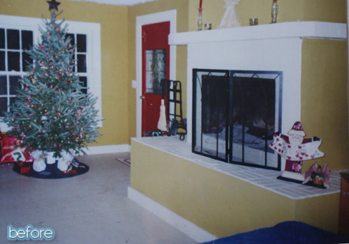 This hearth was all kinds of awkward. All I can think of when I look at it is how fun it would have been to dress it up like Uncle Sam for the 4th of July. Do you see it too? Anyway, it went through a small makeover at some point, when Audra dressed it up with drywall and paint and removed the brass doors, but it was still a beastly-sized thing.
