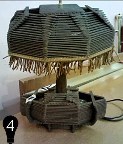 Someone sacrificed a lot of time, popsicles, and All-Bran to craft this popsicle-stick wonder. But in return, they got an ugly lamp! And probably diabetes!