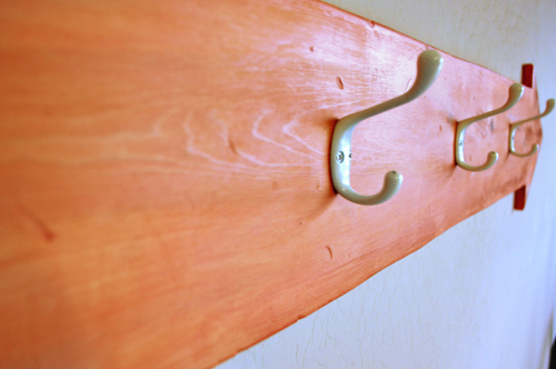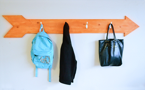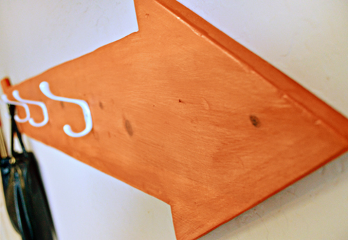 Thus, a new coat rack was in order: larger, lower, and arrow-shaped for funzies.