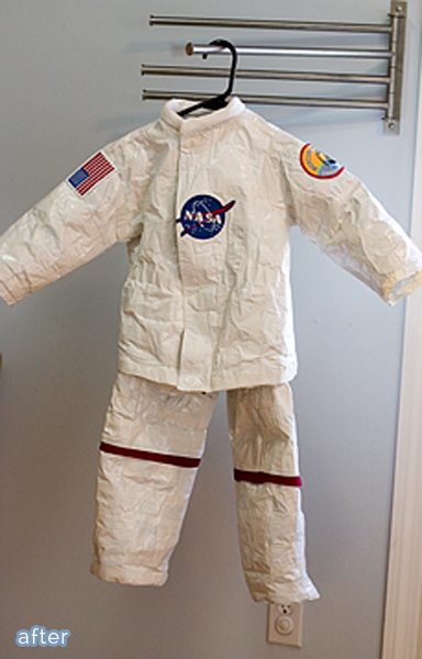 What I SHOULD have said was, “Do what Holly at Stitch Craft did. She turned a snow-suit into an astronaut costume with white duct tape! That would work for a race-car driver too. It’s genius I say!”