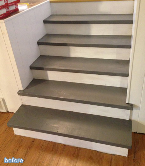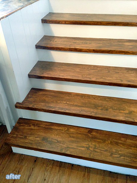 And speaking of sneaky ways of faking a desired look, check out these stairs from Sarah at Compulsive Craftiness. Yep, that is 100% real fake. She painted the wood-grain herself! Beautiful AND attainable!