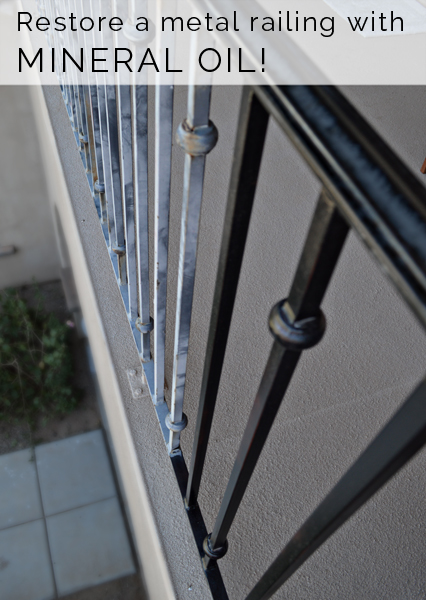 With everything looking so nice and shiny on the vertical garden, I noticed that the rest of my balcony was looking pretty shabby in comparison. Especially the oxidized metal railing, which had taken a beating from years of direct afternoon sun. So, I thought I’d share a tip I learned a long time ago to easily restore this type of damage. Get something to write this down, it’s really complicated.