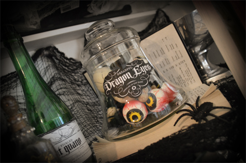 I printed out a few Halloween labels from Design. Wash. Rinse. Repeat. for the rest of my remaining jars, and filled them up with whatever creepy things I had on hand.