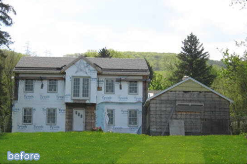Once upon a time, about 60 years ago, lovely little ranch home was built on the top of a hill. A happy couple raised a family and lived there for many years until they died in 2005. One of their sons bought the home from the estate, with big plans to make it a two-story. Sadly, halfway through the job, he got injured. He went past the construction loan period and the bank shut him down. The house sat, untouched and unfinished for several years.