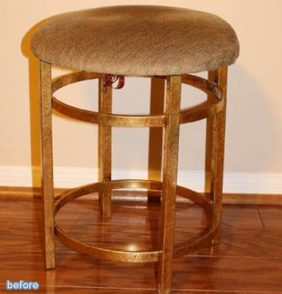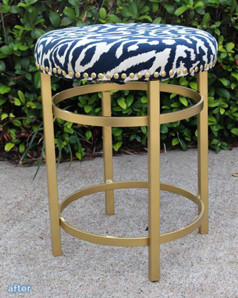 But if you still can’t commit to full-blown animal print, how about something in the neighborhood? This stool makeover from Lura features a fabric that’s more ikat than wildcat, but still has that luxe look of animal print, especially against the gold. Rowr!