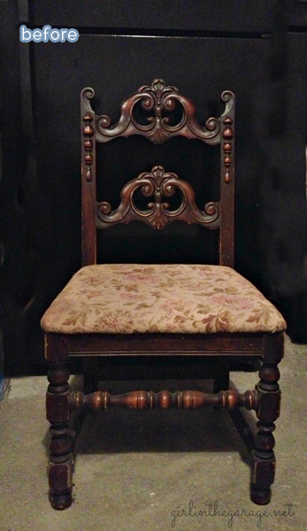 See this chair from Jen at Girl in the Garage? Two steps, people: #1 Paint. #2 Recover seat. DONE.