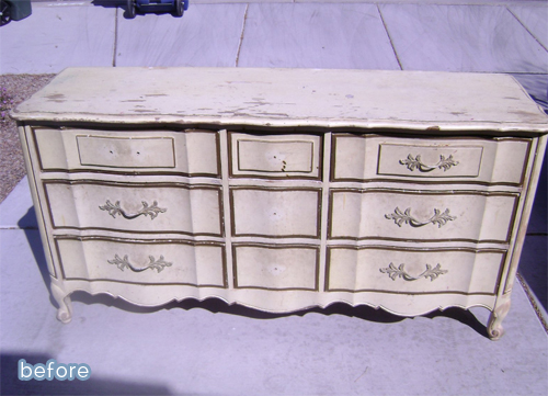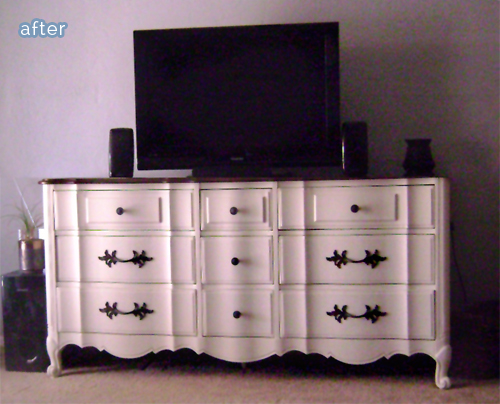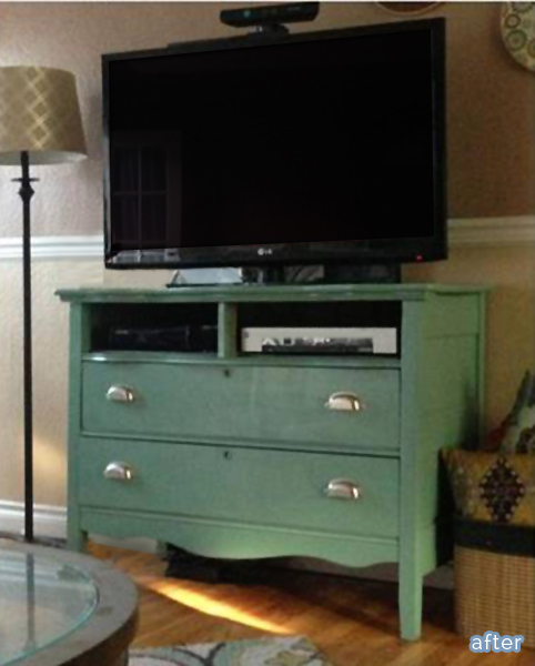 Better After reader Sierra had the same idea, only she did hers in a beautiful shade of jade. Can you beleive she paid $10 at a yard sale for that dresser? WHERE are all these fabulous yard sales taking place? I need addresses, people.