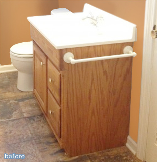December 18, 2013 at 6:42 AMThey really did that vanity a favor with that beautiful paint job – the details really pop now, where they were lost in all the wood grain look before… definitely Better After!